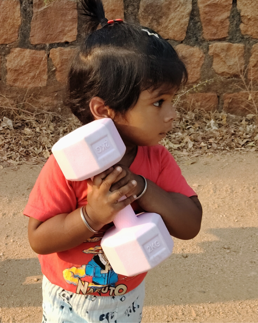 Muvya Laksara VK (born on 27 April 2024), from Tamil Nadu, India, achieved the record “Longest Time a Toddler Walked Holding 2kg Weight.” She successfully walked continuously while holding a 2 kg dumbbell for a duration of 52 seconds, maintaining balance and grip without dropping the weight. This remarkable achievement demonstrates her exceptional strength, coordination, and determination at a very young age. She accomplished this feat in 2026 in Madurai, Tamil Nadu, India.