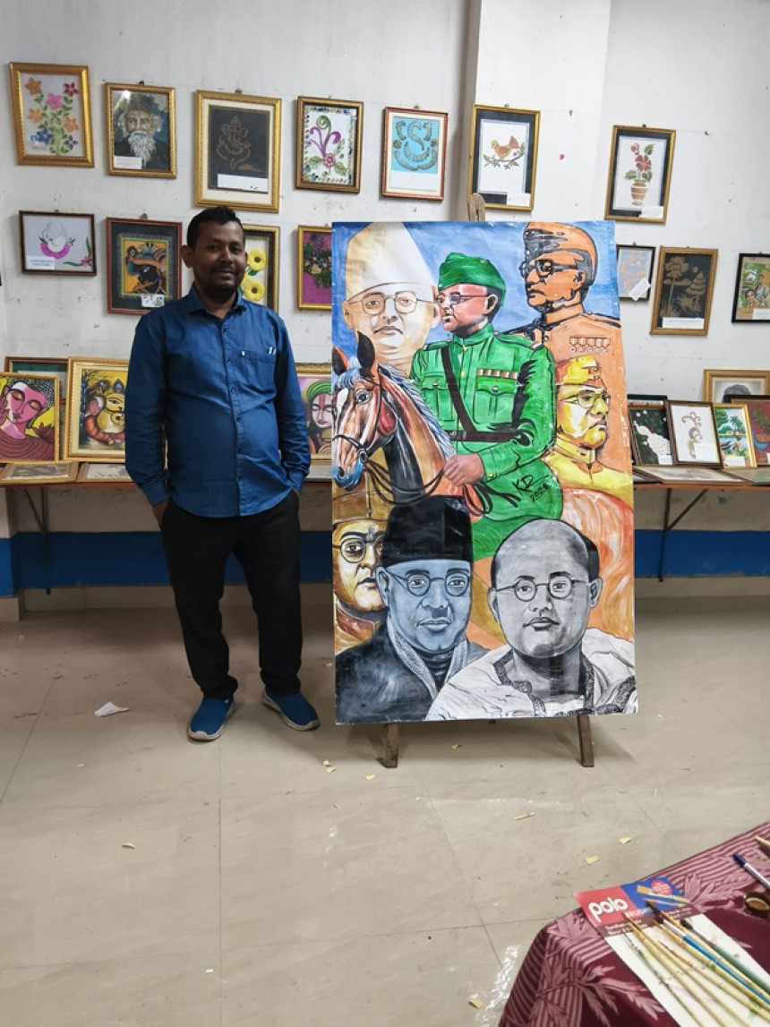 Kartik Chandra Das (born on 10 May 1987) from West Bengal, India, achieved the record “Most Portraits of Netaji Subhas Chandra Bose on a Single Canvas.” Created a total of 7 expressive portraits of Netaji Subhas Chandra Bose on a single canvas, measuring 5 feet 4.5 inches in height and 3 feet 1.5 inches in width, completed on 23 January 2026 in Purba Medinipur, West Bengal, India.